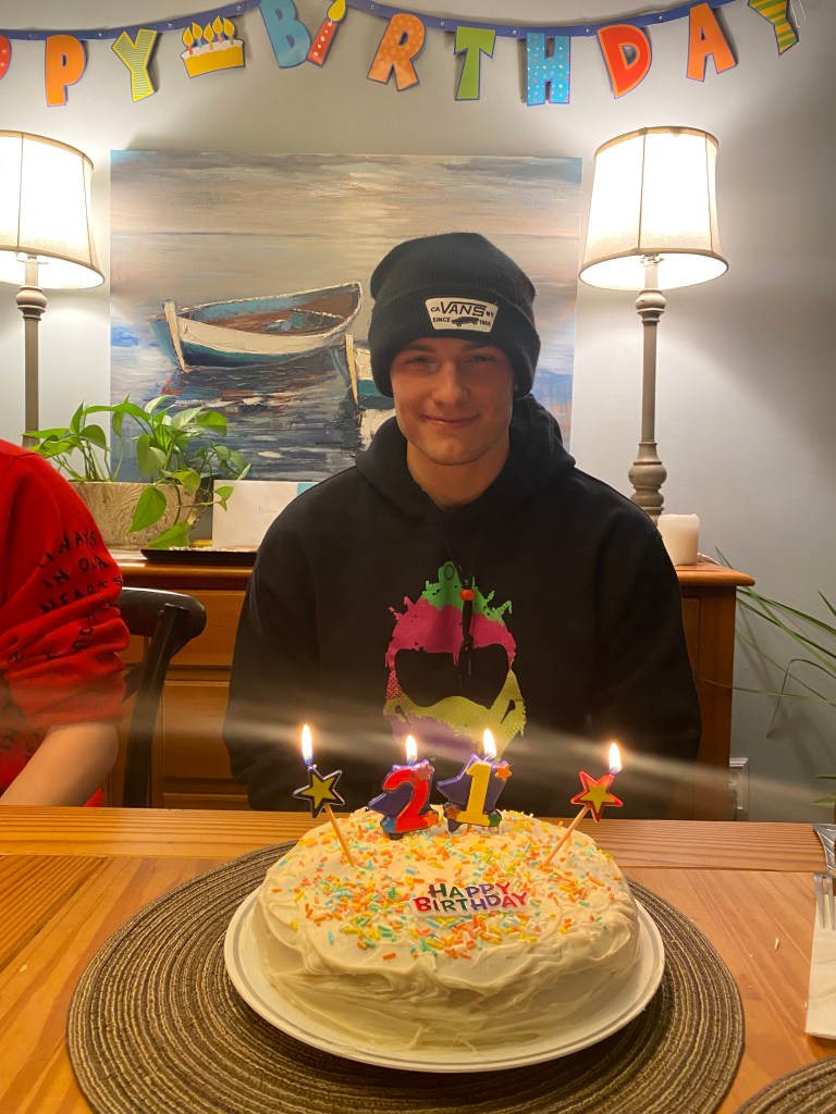 As luck would have it, my step-son Michael was coming home for the weekend to celebrate his 21st birthday! We were so happy George would be home for this milestone! We enjoyed cake and watched the movie Belfast. My daughter, Zoe and her boyfriend Kevin came as well. It was such a great evening! I think it was rather a shock for the kids to see George, as he had lost 24 pounds since being in the hospital and looked thinner than the last time they saw him. So weird that he lost that much weight as he didn’t experience nausea (except for one night) and never lost his appetite.