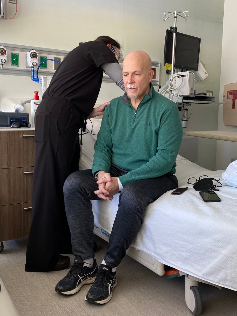 On February 1, we got the good news that George was going to be discharged and could go home! It was a long month of driving back and forth to Camden for me and a long month being away from home for George. At first, George was a little scared to leave the hospital because he felt safe there. Anytime he ran a fever or had a headache, the doctors and nurses were right on top of it. Oh, you have a headache? Let’s send you down for a CT scan. Your leg hurts? How about an MRI? So, the thought of going home and having a pain or feeling something unusual and having to deal with it without that reassurance was daunting. But, he reluctantly agreed to go home. We were given a magnet for the fridge with a phone number for the triage line to call anytime he ran a fever or experienced a few other symptoms. With fever, he was to go immediately to the emergency room, where he would be transferred back to Cooper hospital. Once we told Dr. Leiu he wanted to go, it was pretty quick as all the discharge papers had been completed.
