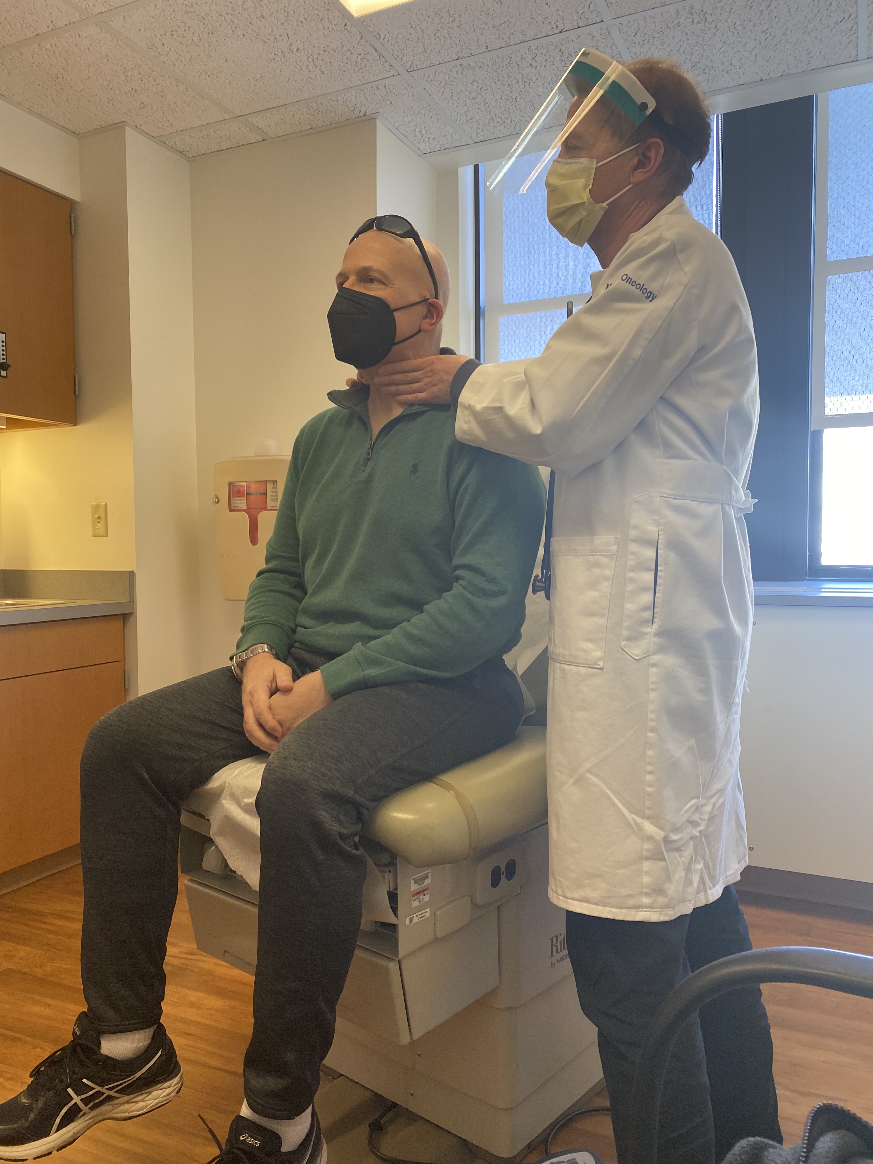 Then we were taken to the exam/consult room and met Dr. Wagner. He went over George’s medical history, including how he was diagnosed with leukemia and then he gave him a quick exam.