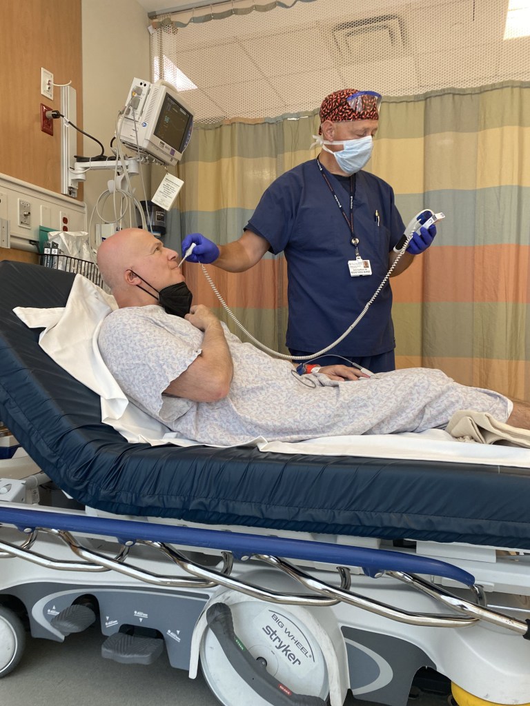 The procedure was pretty simple. They used Lidocaine for the PICC line and once that was in place, they used the PICC line to deliver some Fentanyl and Versed to sedate him for the insertion of the Hickman catheter. Using real time ultrasound guidance, they punctured the right internal jugular vein and actually had to make another incision, and then they were all done!