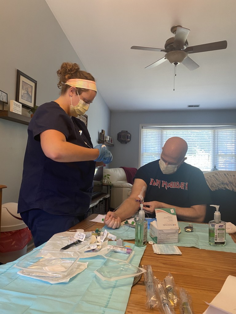 On Mondays and Thursdays, a nurse comes to draw George’s blood and every Thursday, she changes the dressing on his PICC line. Then later in the day, a courier comes and picks up the vials of blood and takes them to the lab. It’s a pretty cool and convenient system! Friday is magnesium and supply delivery day.