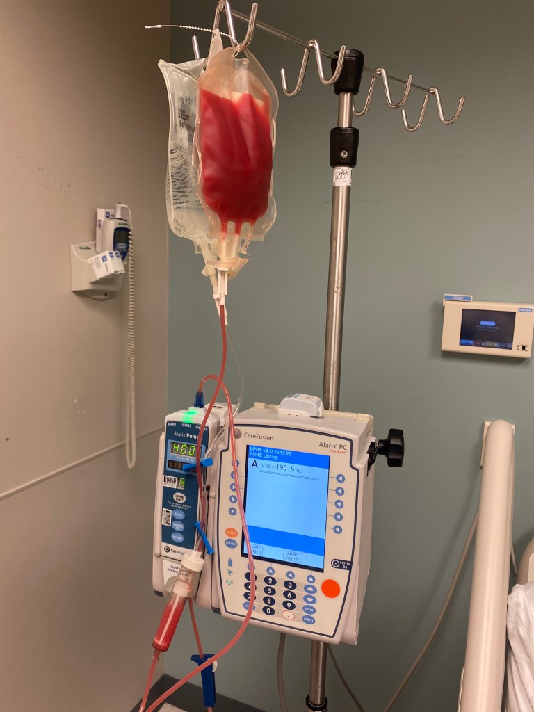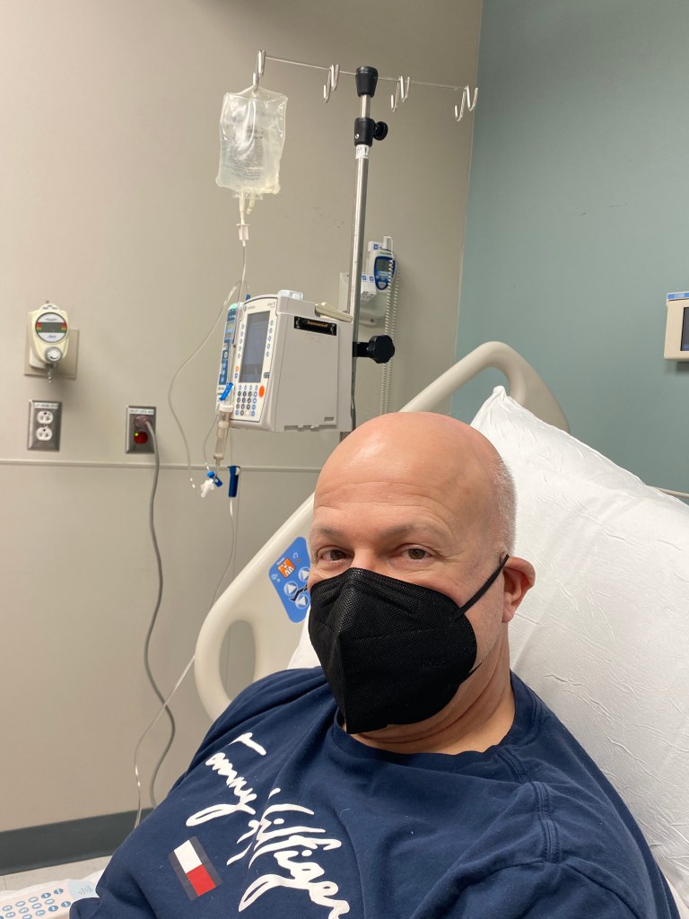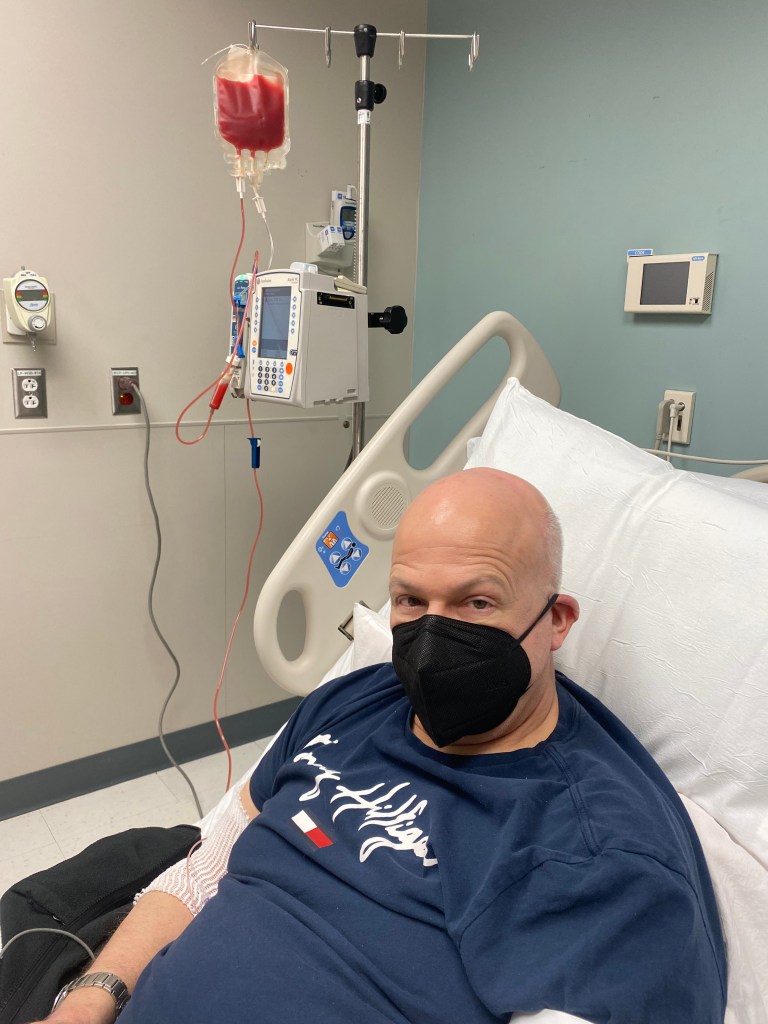 George went in for his DLI (donor leukocyte infusion) on Wednesday, December 14. We were under the impression that the purpose was to boost the percentage of George’s donor cells….to get the low counts back up with more donor cells. However, we were slowly realizing that wasn’t the case.