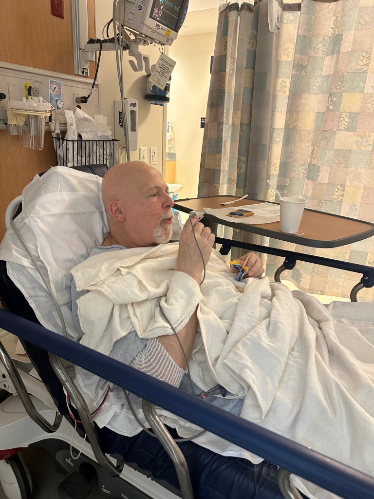 As I mentioned in my previous post, the results of this biopsy are important because George’s marrow must be clear of leukemia cells in order to proceed with his second bone marrow transplant. We should have initial results in the next 3 days or so. Then he has an appointment with Dr. Loren on the 9th to go over the results and plan the next step.