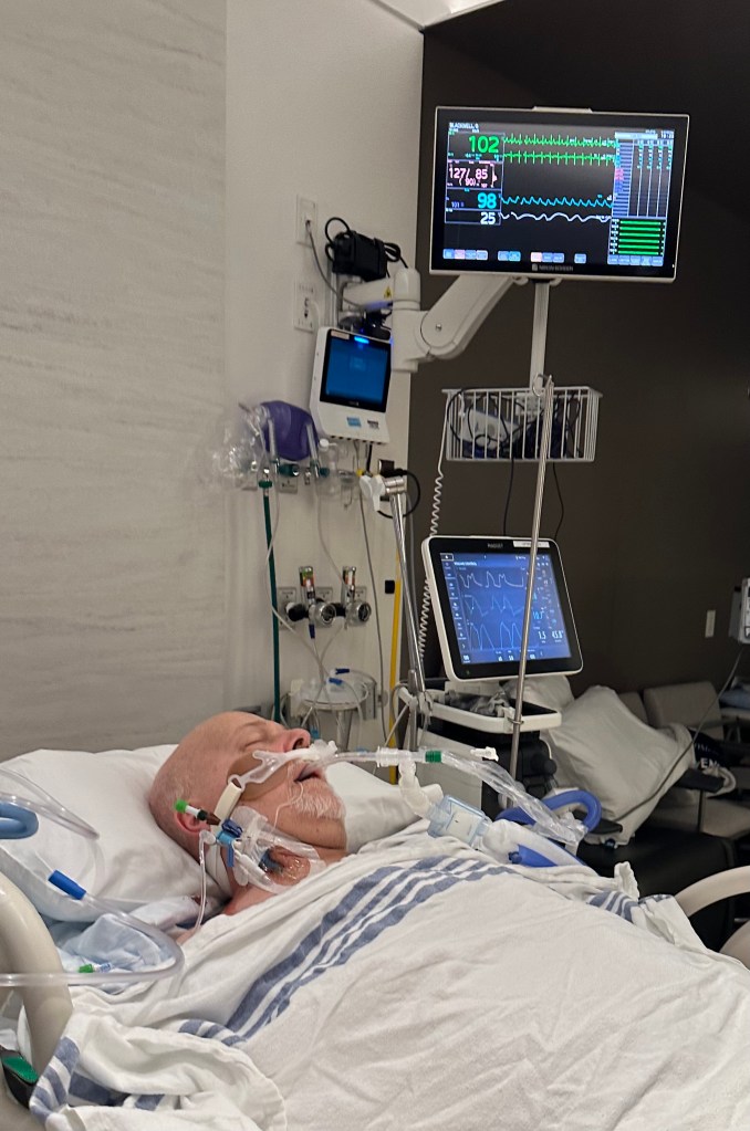 Once the RRT got him stabilized, he was transferred to the ICU on the 14th floor. They suspected an abdominal bleed, so they also wanted to do an endoscopy of his upper GI to see if there was something going on there. First, they inserted the catheter into his jugular. I had to leave the room while they did that. Then we all were allowed in before they sedated him for the endoscopy. He was also put on a ventilator, which I knew scared George, but the doctor said he was ok with it because they told him it was temporary.